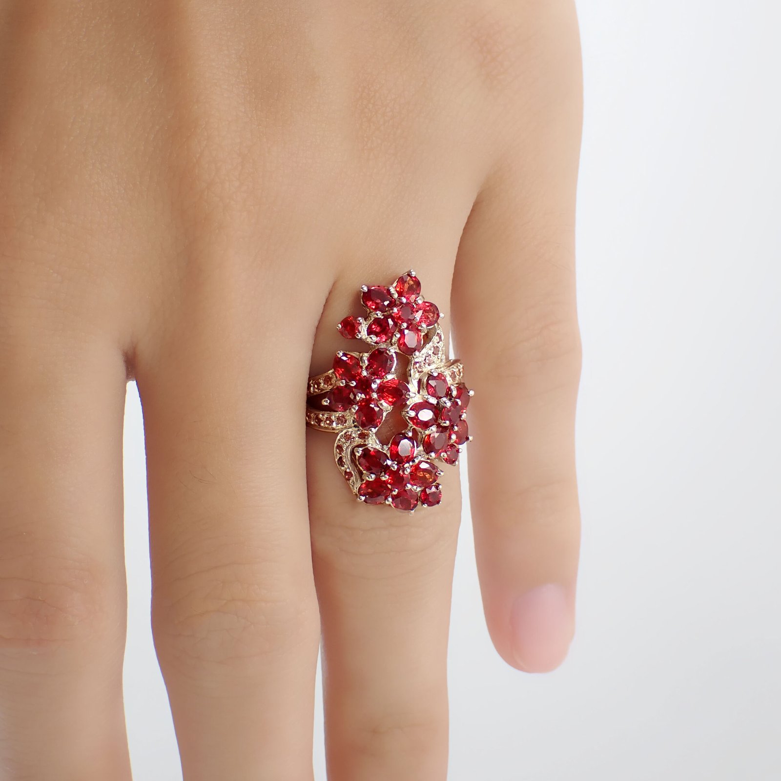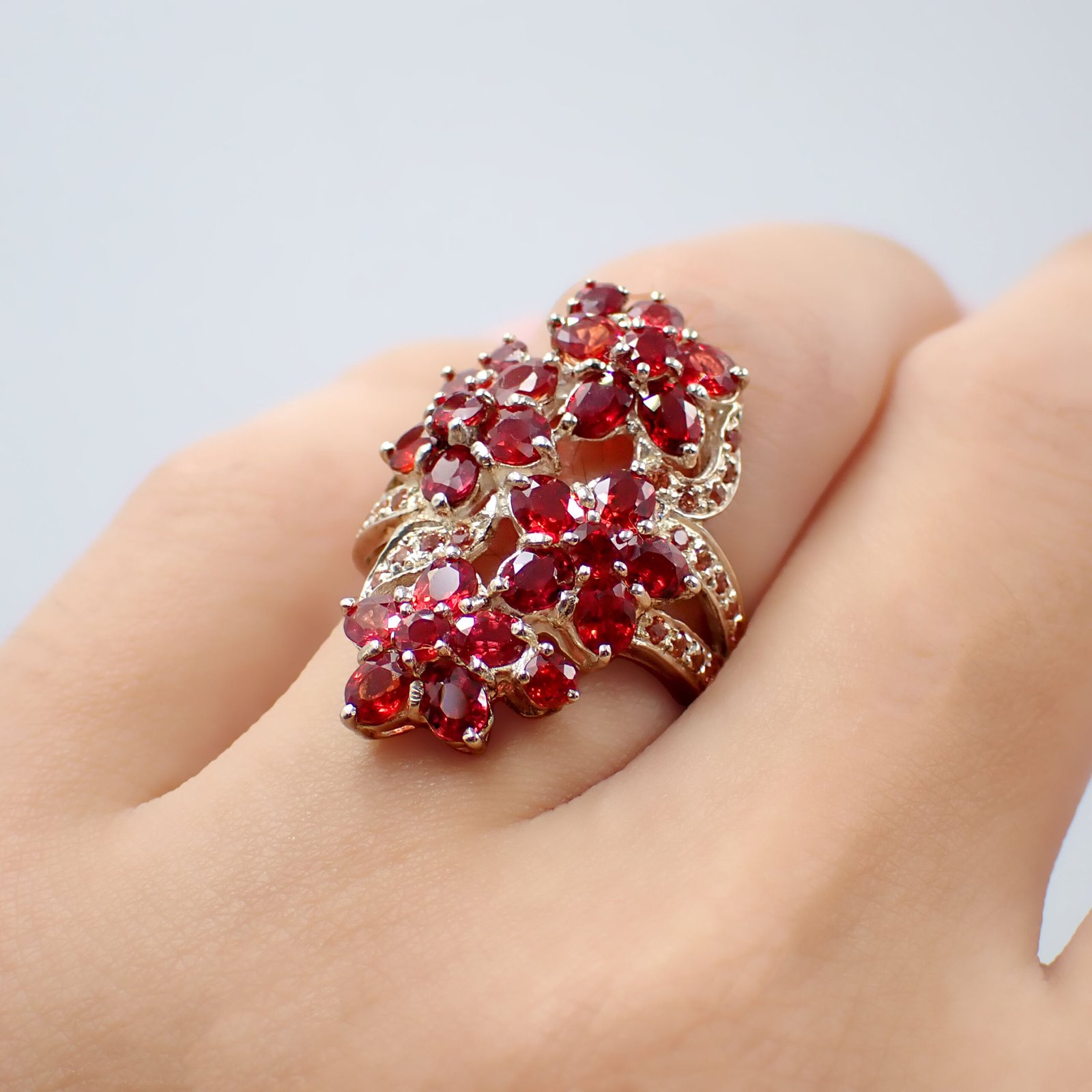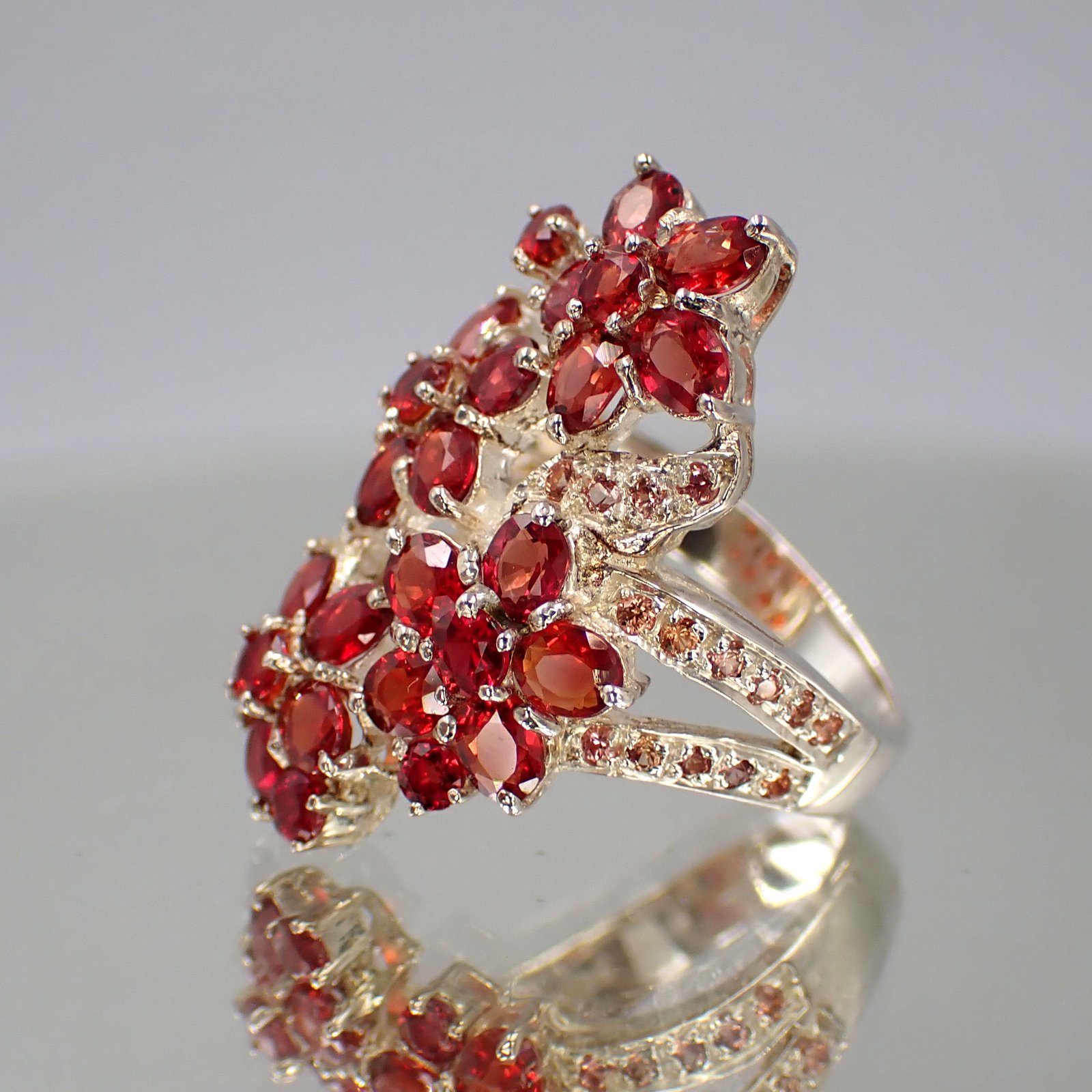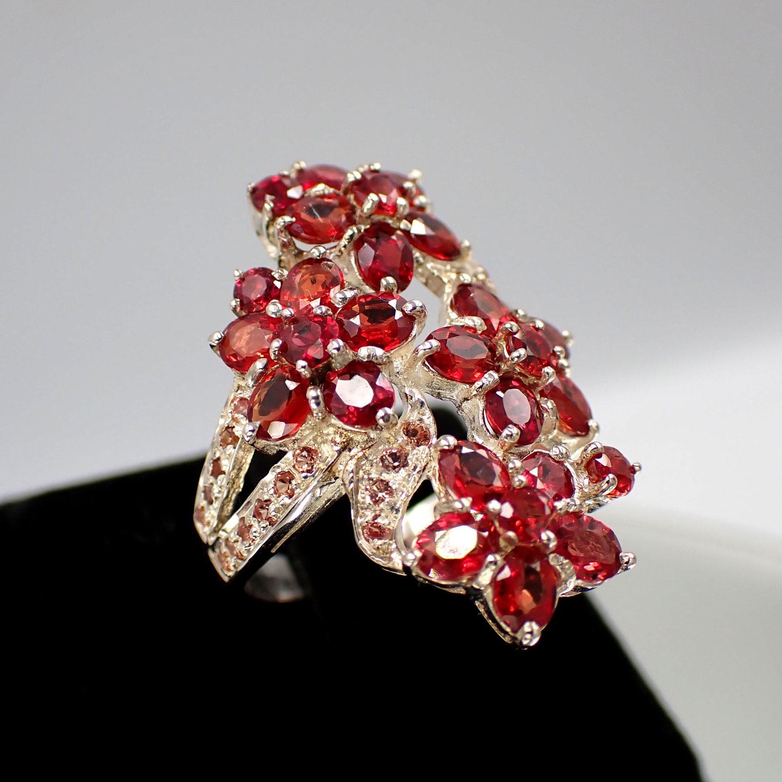 Flower Bloom Ruby & Padparadscha Ring [ 925 Silver ]
