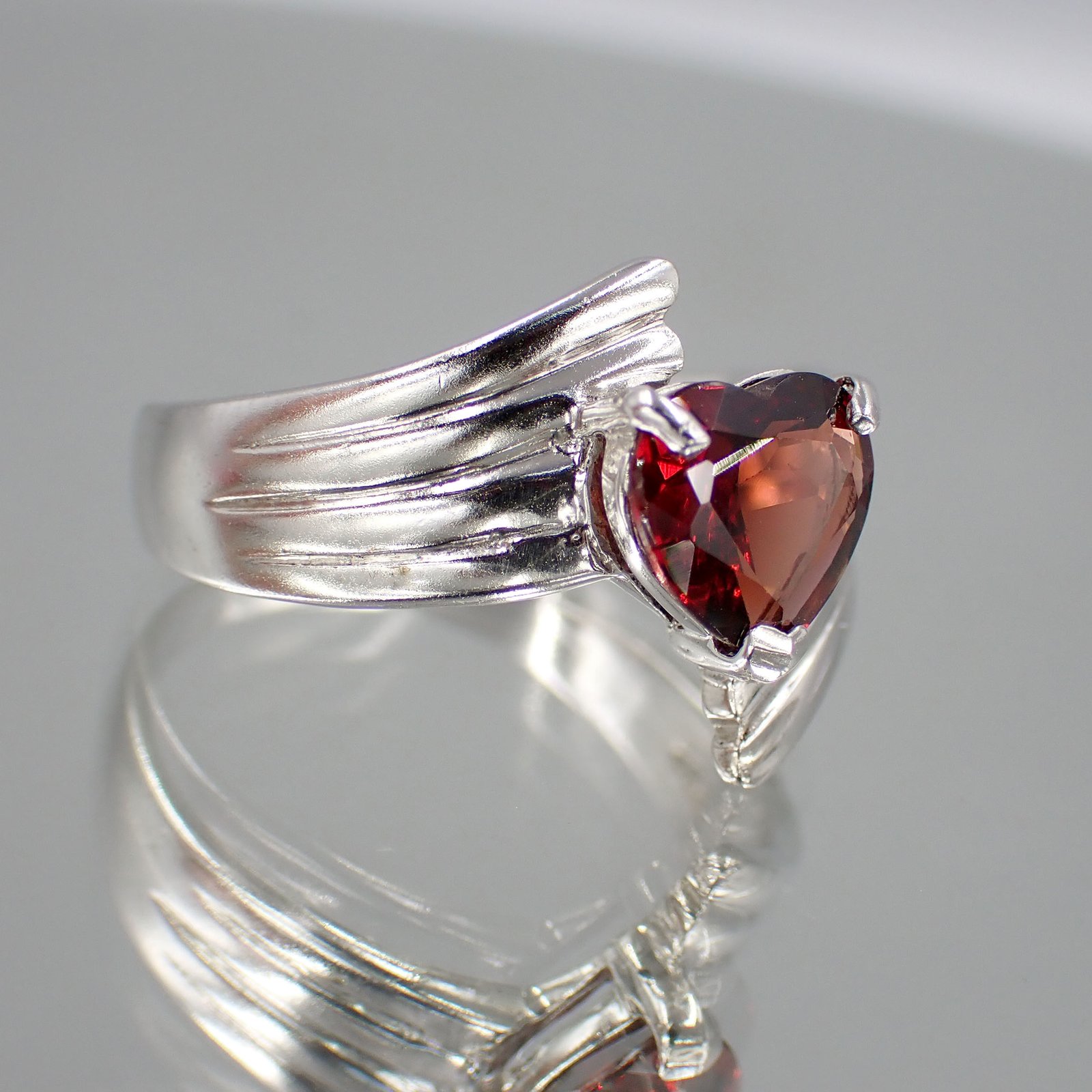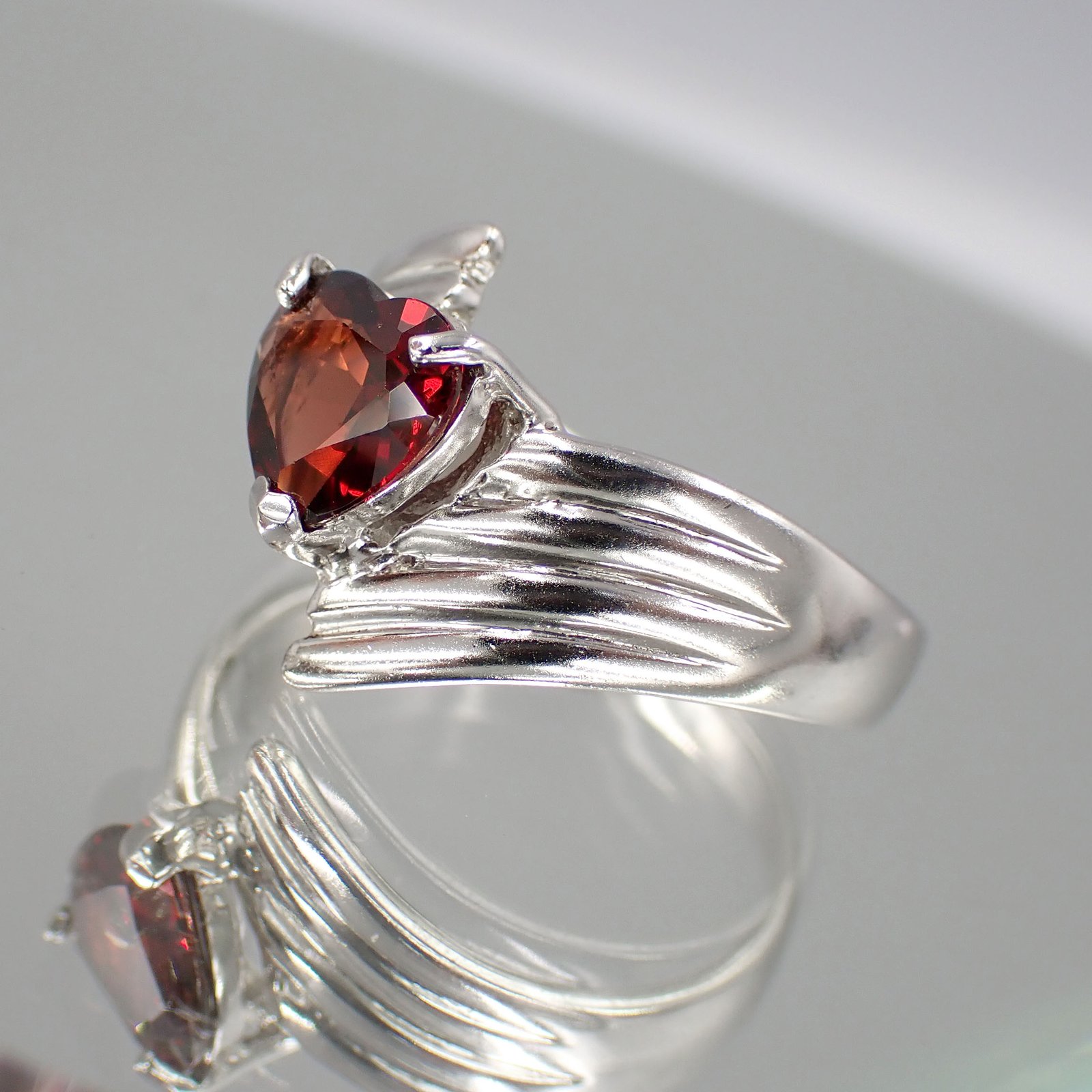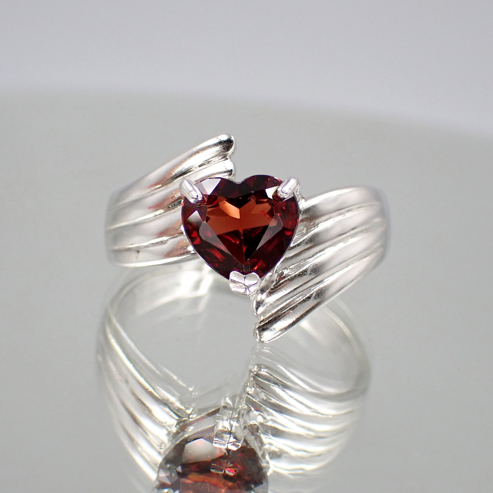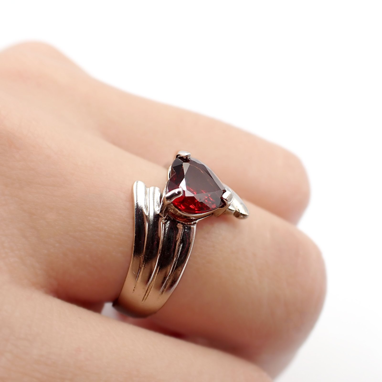 Heart Red Garnet Ring [ 925 Silver ]