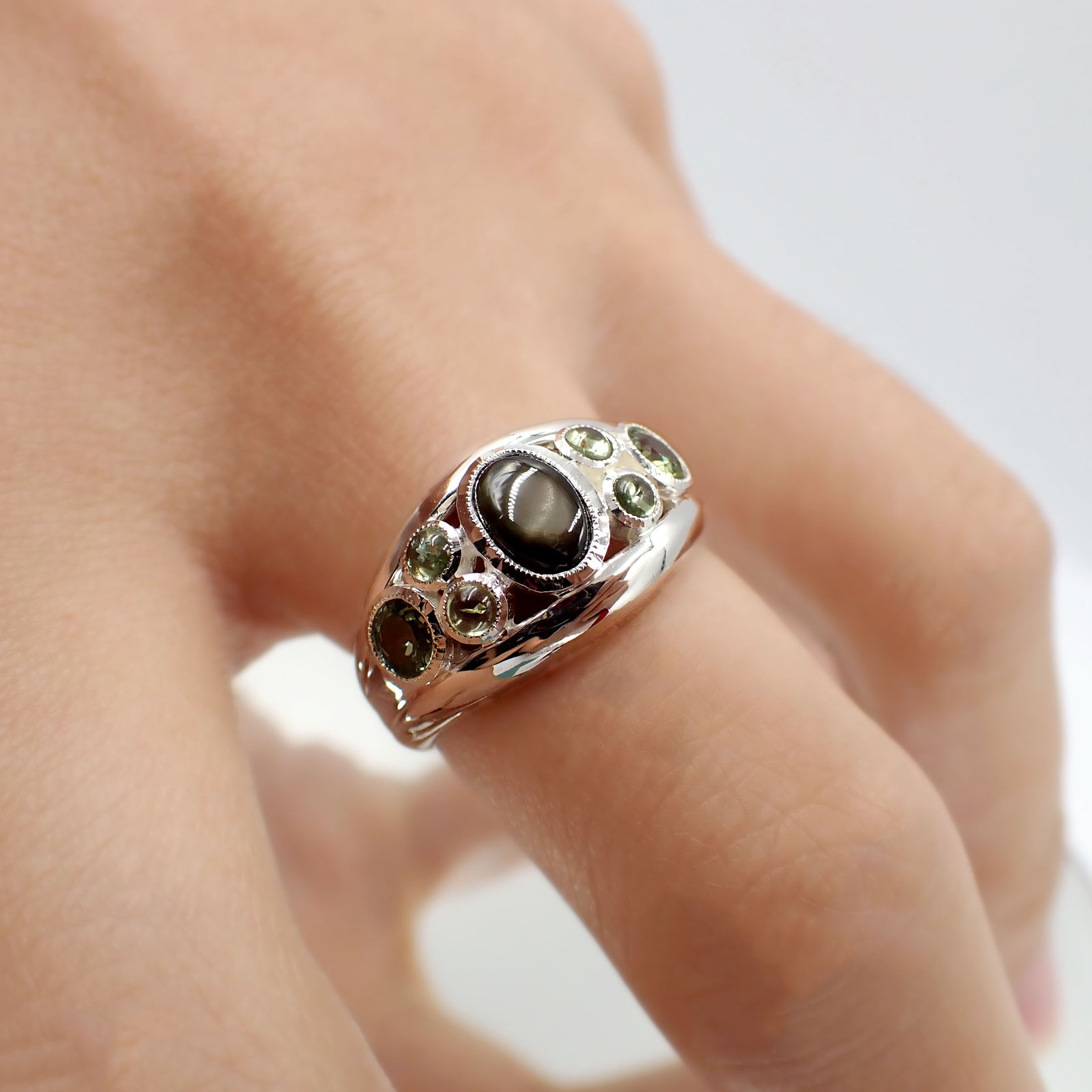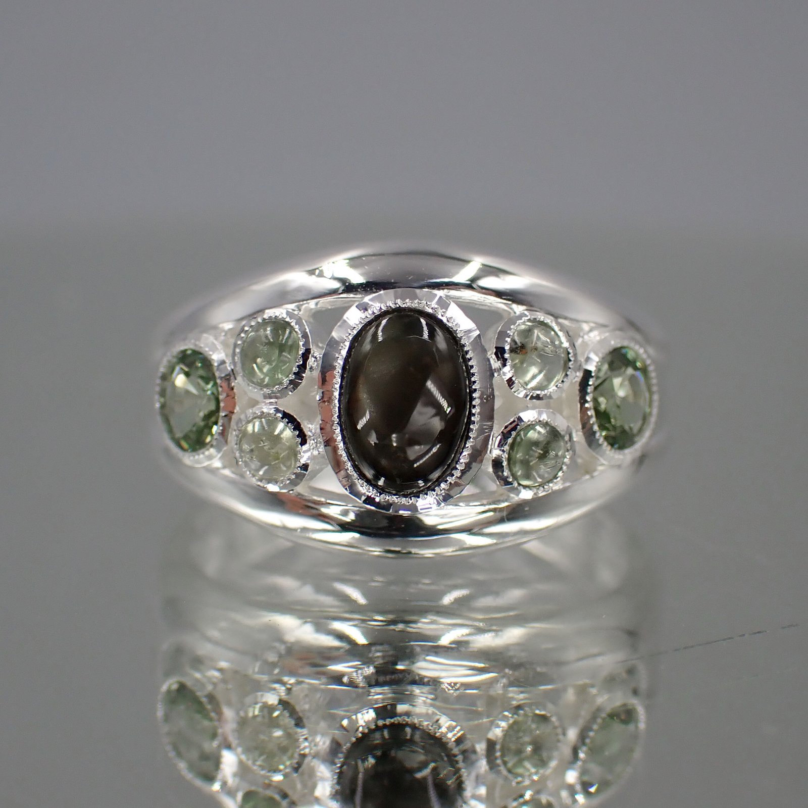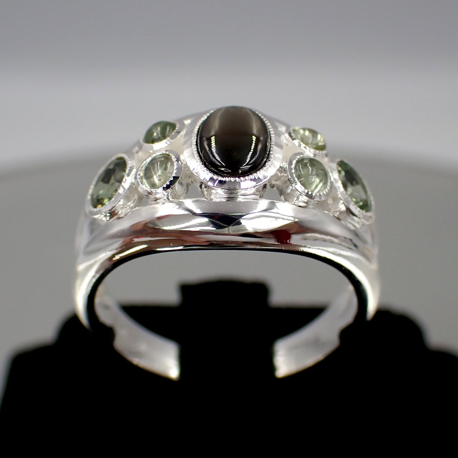 Star Sapphire Round By Green Sapphire Ring [ 925 Silver ]