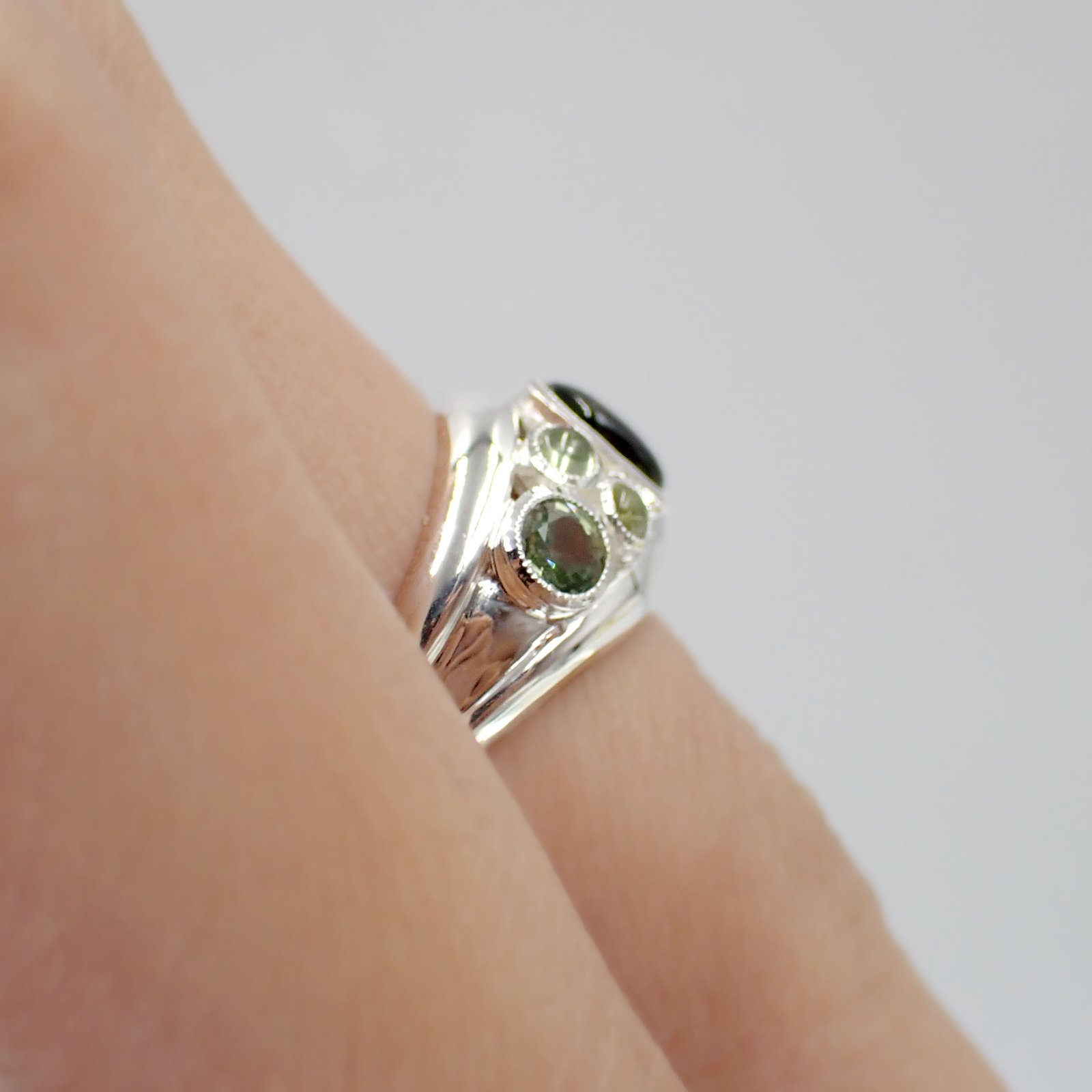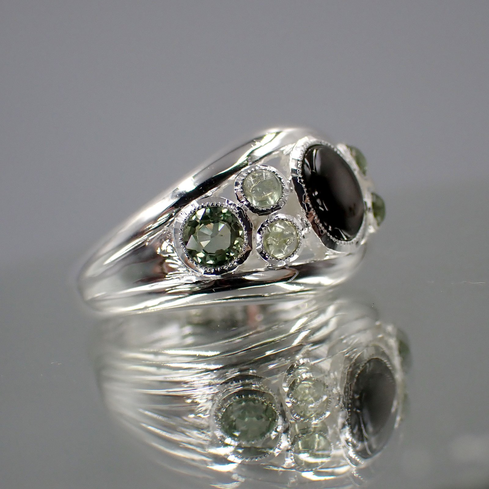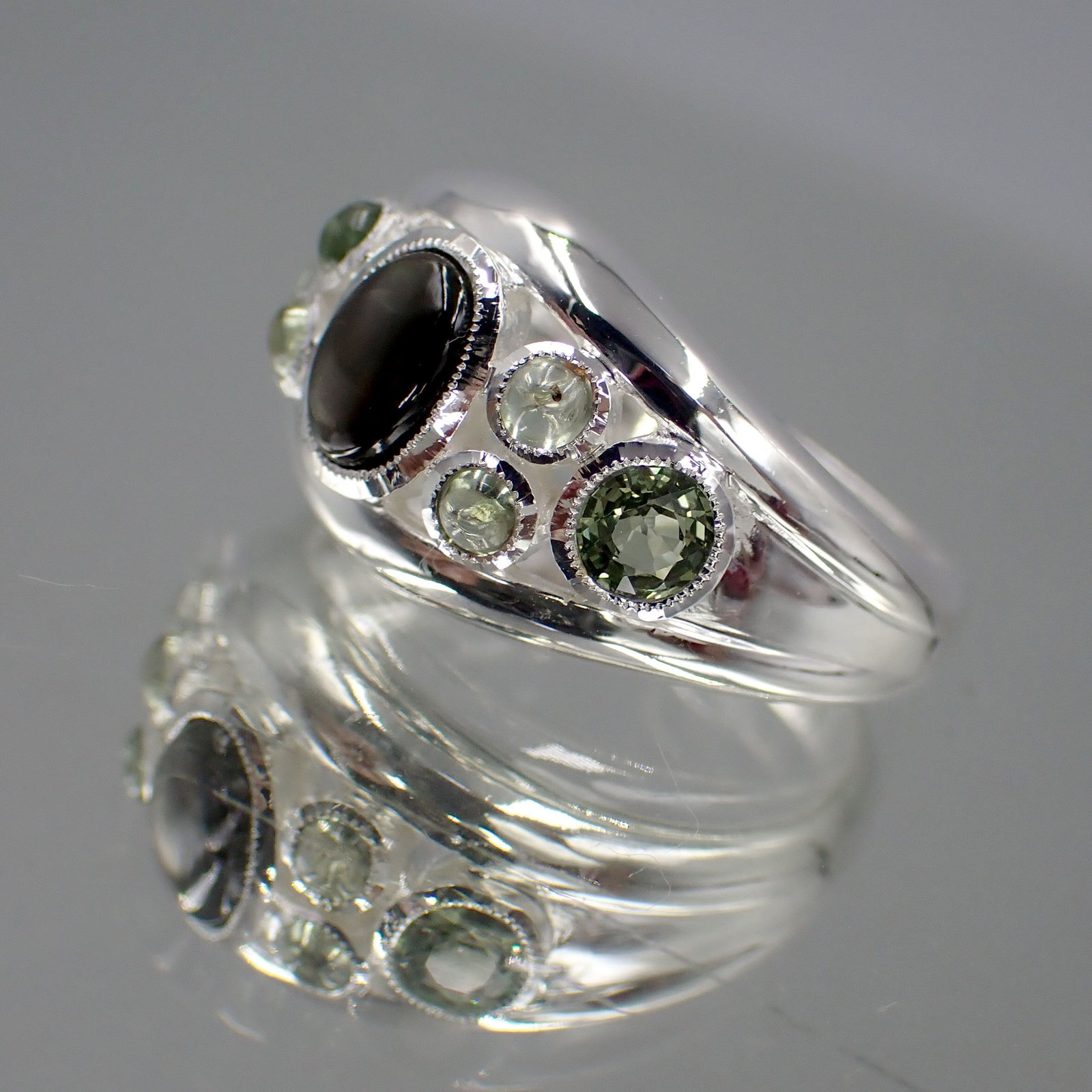 Star Sapphire Round By Green Sapphire Ring [ 925 Silver ]
